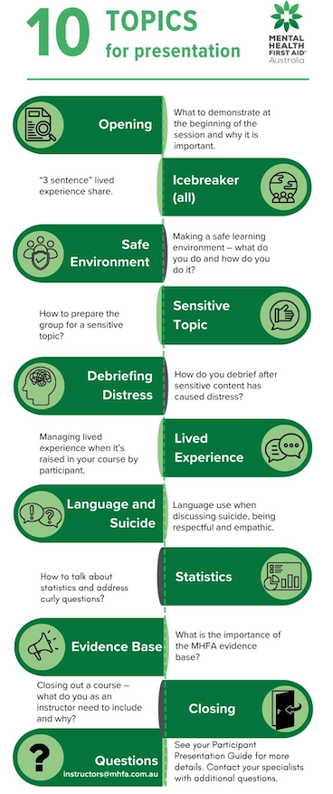 There are 10 potential topics for presentation. All instructors will prepare the icebreaker, plus 1 to 2 other topics.