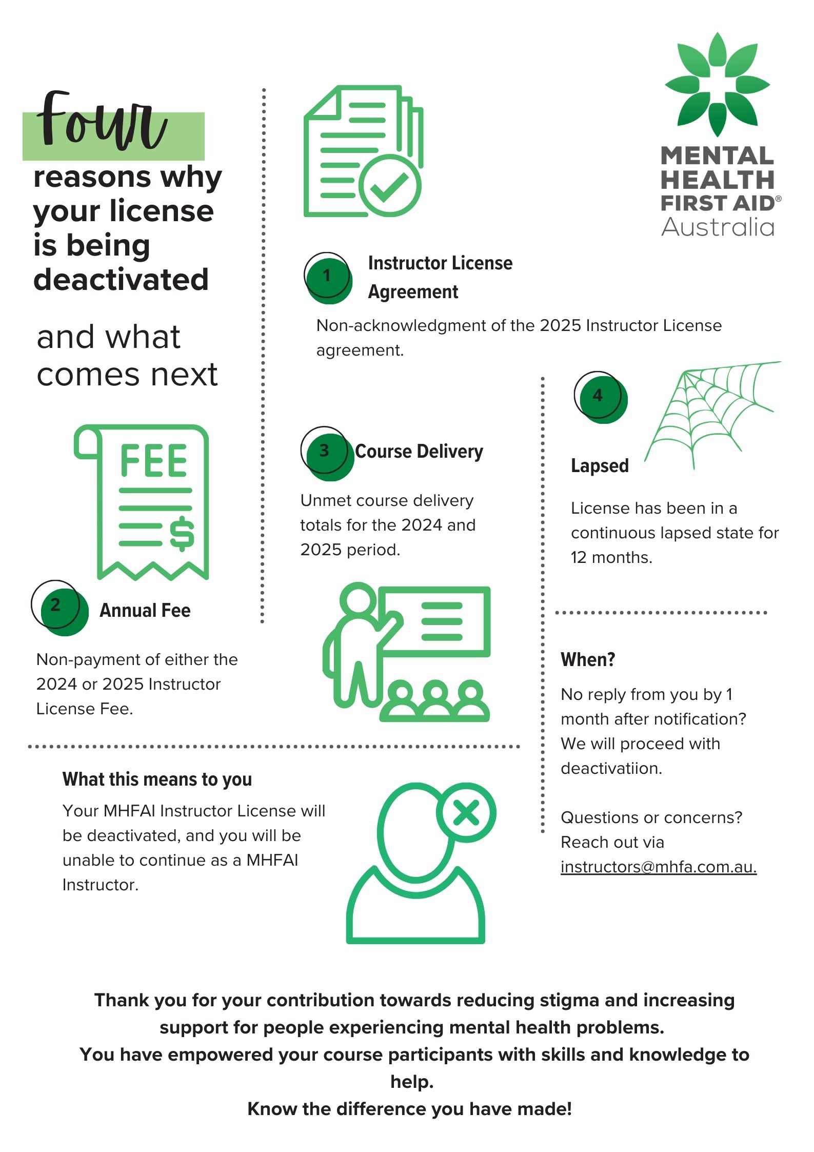 To share your reasons for being unable to meet your license requirements, please complete the License Deactivation form via this link.